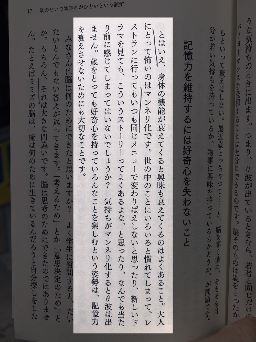 図書館から借りた本「老後の真実」いくつ汚れやマークがあるけど、メトロで立ち読み済むまだ二十代前半なのに、今はもう老後生活を病み始まったマンネリ化というのは確かに最近すごく気にする要するには年をとっても好奇心を持ち続けること