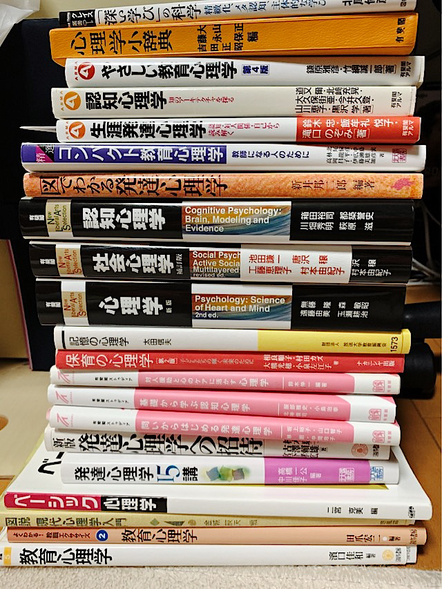 仕事のための本が机の上には乗り切らないので床にも山積み。